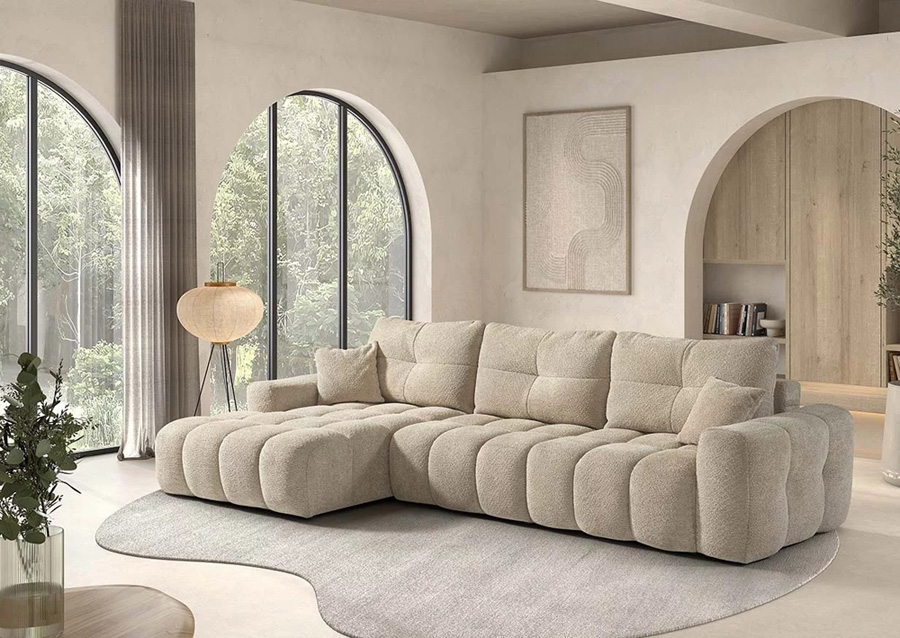 Confortluxe Dimensions : l 101/136/139 x h 99 x p 120/170/188/234 cm Structure intérieure : Pin massif + contreplaqué + panneaux de particules 2 couleurs à préciser : 1 pour le modèle 1 pour le coussin décoratif 8913 canapé modulaire