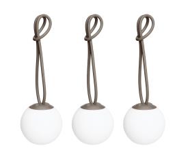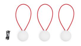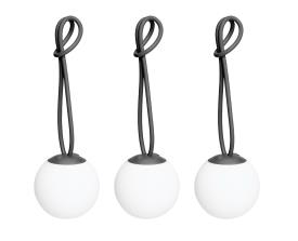 Fatboy Petites lampes rechargeables Dimensions : Ø 12 x 34 cm Le Bolleke Mini Set de Fatboy offre un éclairage d’ambiance dans un format compact. Cet ensemble de trois boules lumineuses LED sans fil est parfait pour une utilisation à l’intérieur comme à l’extérieur. Grâce à la boucle pratique en silicone, vous pouvez les accrocher facilement où vous voulez. Avec trois niveaux d’éclairage et une autonomie allant jusqu’à 24 heures, vous créez sans effort l’ambiance idéale pour chaque occasion. Le chargement est facile grâce aux câbles USB inclus. Inspiré des attaches de voiles, le design de Nathalie Schellekens allie style et fonctionnalité, faisant de ces lampes un ajout polyvalent et intemporel à votre maison ou espace extérieur. Caractéristiques IP : IP55 Sans fil : Oui Réglable : Oui Couleur lumineuse : 2700 K (blanc chaud) Kelvin Flux lumineux (Lumens) : 30 lumen Température ambiante : -10°C - 45°C Ta Type de source lumineuse : LED Source lumineuse (max) : 1 Watt Durée de vie de la lampe : 50.000 heures Fixe : Fixe (LED) Durée de fonctionnement (réglage de lumière le plus brillant) : 10.5 heures Volts : 3.7 V VAC Control / Operating : Interrupteur sur le luminaire Adaptateur offrant une intensité de sortie égale : 5V 2.4A Câble (de chargement) inclus : Oui Longueur du câble (de charge) : 1.3 m Type de connecteur : USB-C Temps de charge (heures) : ± 2.5 heures Il a une batterie : Oui Battery model number : QJ16340 Type de batterie : Lithium-ion 700 mAh Chimie de la batterie : LN Poids de la batterie : 17,7 grammes Portable : Oui Matière textile : Polyéthylène, ABS Matériau (Intérieur) : Acrylonitrile butadiène styrène (ABS) Certificats : Conforme CE Informations de l'utilisateur Ce produit est livré avec un câble de charge, mais sans adaptateur. Le câble de charge dispose a une connexion USB. Vous pouvez utiliser l'adaptateur de votre téléphone ou un adaptateur Fatboy, ou connecter le câble USB à votre ordinateur. Adaptateur max. 5 Volts 1 Amp. Si vous chargez votre produit avec un adaptateur qui ne remplit pas ces conditions, cela peut affecter le délai de livraison de la batterie. Vous n'avez pas d'adaptateur approprié?. Achetez un adaptateur USB approprié ici. Pourquoi ? En savoir plus sur la durabilité. Informations de nettoyage Nettoyez soigneusement avec un chiffon doux et humide, en ajoutant un peu de savon seulement si nécessaire. N’utilisez aucun produit de nettoyage contenant des produits chimiques agressifs. lampe suspension
