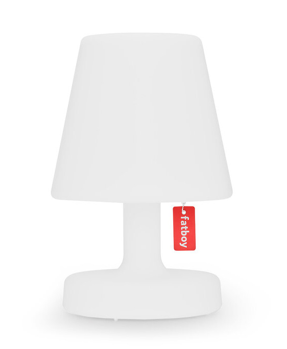 Fatboy Lampe de table rechargeable Dimensions : Ø 16 x h 25 cm La lampe de table d'extérieur et d'intérieur sans fil à emporter partout. Chargez votre Edison the Petit via la connexion USB et profitez d'une ambiance instantanée jusqu'à 24 heures, dans le mode de luminosité sélectionné. Si vous trouvez qu'il manque un petit quelque chose à votre petite lampe de led, habillez-la d'un abat-jour Cooper Cappie. Ces petits abat-jours interchangeables offrent immédiatement un look différent. Caractéristiques IP : IP21 Sans fil : Oui Réglable : Oui Couleur lumineuse : 2700 K (blanc chaud) Kelvin Flux lumineux (Lumens) : 58 lumen Température ambiante : -10°C - 45°C Ta Type de source lumineuse : LED Source lumineuse (max) : 2 Watt Durée de vie de la lampe : 50.000 heures Source lumineuse remplaçable : Oui, avec le kit de réparation Fatboy Fixe : Fixe (LED) Durée de fonctionnement (réglage de lumière le plus brillant) : 8 heures Heures de fonctionnement (réglage d'éclairage le plus bas) : 24 heures Volts : 3.7 V VAC Control / Operating : Interrupteur sur le luminaire Adaptateur : Non Adaptateur offrant une intensité de sortie égale : 5V 1A Câble (de chargement) inclus : Oui, USB-C vers USB-A Longueur du câble (de charge) : 1.5 m Type de connecteur : USB-C Temps de charge (heures) : ± 3 heures Il a une batterie : Oui Battery model number : PN704050 Type de batterie : Li-Polymer 1600 mAh Chimie de la batterie : LN Poids de la batterie : 27,9 grammes Designer : DeMakersVan Portable : Oui Certificats : Conforme CE Informations de nettoyage Nettoyez soigneusement avec un chiffon doux et humide, en ajoutant un peu de savon seulement si nécessaire. N’utilisez aucun produit de nettoyage contenant des produits chimiques agressifs. lampe à poser