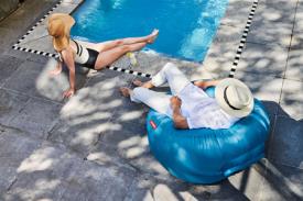 Fatboy Designer. Marijn Oomen - Pouf gonflable Dimensions : l 110 x h 62 x p 103 cm Détendez-vous en quelques secondes, où que vous soyez, avec ce fauteuil gonflable ultra-résistant. Le Fatboy Lamzac O est un fauteuil relax gonflable que tu remplis d’air en le balançant à l’horizontale. L’airlounger gonflable se ferme facilement grâce au système roll-and-lock. Son tissu en nylon ou polyester ripstop et son revêtement imperméable le rendent résistant à l’eau et aux taches. Il ne pèse qu’environ 1 kilo, mais peut supporter jusqu’à 150 kilos. Caractéristiques Usage : À l'intérieur et à l'extérieur Informations supplémentaires Martindales : 30000 Mart. Hydrofuge : Oui Résistant aux UV : Haute tenue des couleurs face aux UV Rechargeable : Oui Capacité : 200 kg Solidité des couleurs : Régulier Résistant aux taches et aux moisissures : Oui Matériale Matière textile : Ripstop polyester TPU Matériau (sac de transport / oreiller gonflable) : 100% polyester ripstop PU Matériau de remplissage : L'air Inclus Livré avec sac de transport : Oui Facile à utiliser Utilisé à l’intérieur comme à l’extérieur. Robuste et durable Recommandations/informations des utilisateurs - Rentrer Lamzac à l’intérieur lorsqu’il n’est pas utilisé. - Il est normal que le Lamzac perde de l'air avec le temps. L'air diminuera légèrement au bout de plusieurs utilisation, mais aussi lorsqu'il n'est pas utilisé. Récupérez facilement l'air supplémentaire en fonction de votre niveau de confort. Instructions/informations de nettoyage Tapotez doucement les zones souillées avec un chiffon humide. Facile à nettoyer Facile