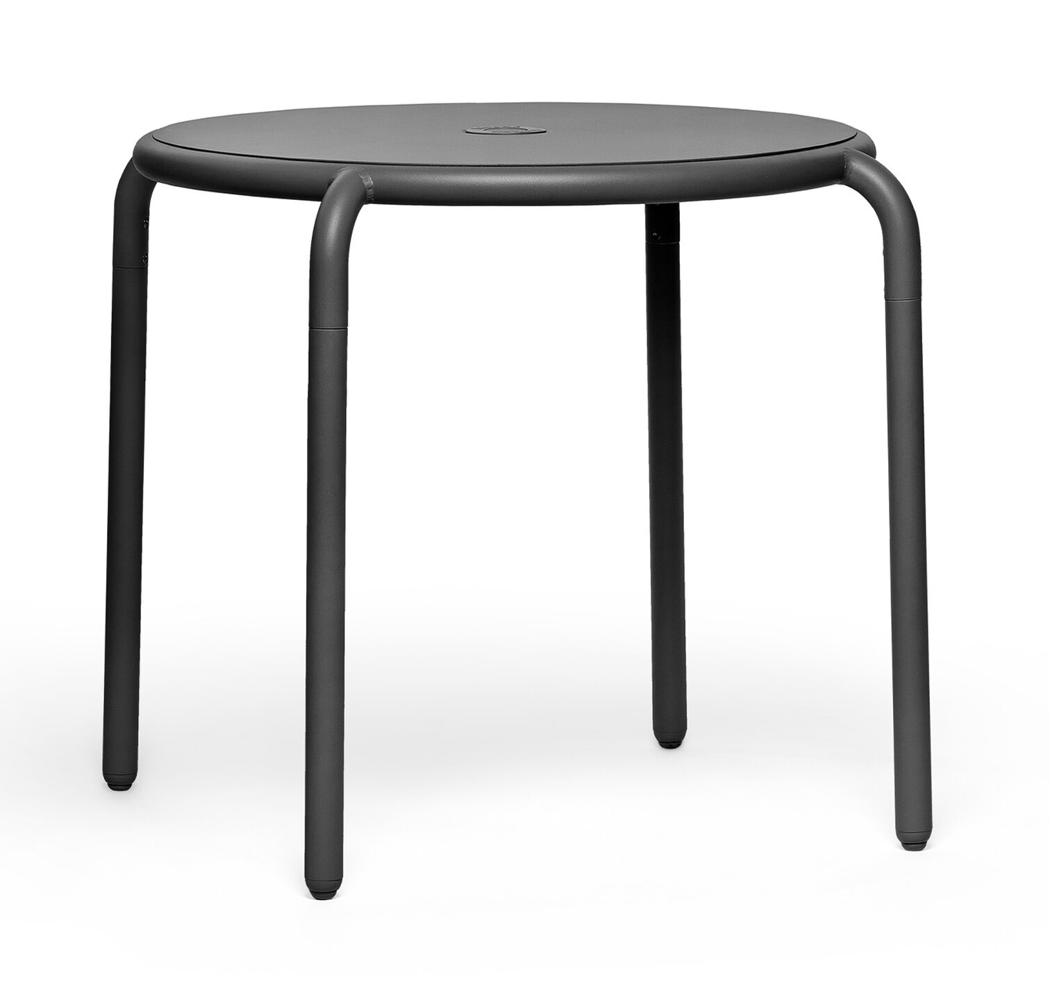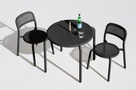 Fatboy Design. Erik Stehmann - Petite table de jardin Dimensions : Ø 80 x h 75 cm Avec la table de bistrot ronde Toní, crée l'agencement idéal de jardin ou de terrasse en un clin d'oeil. L'aluminium léger rend la table de jardin pliable facile à déplacer. La table Toní Bistreau offre également une fonction deux-en-un très pratique : le trou situé au milieu peut servir de porte-parasol le jour et de chandelier la nuit. Le secret ? Le dos de la plaque contient un chandelier. Tu souhaites ajouter un côté romantique ? Utilise le chandelier Toní adapté pouvant supporter trois bougies (vendues séparément). De cette façon, tu pourras de détendre à l'extérieur le jour comme la nuit. Allez, sers-toi encore un coup.Le plateau rond de 80x80 cm s'adaptera facilement sur ton balcon ou ta terrasse. Les pieds réglables permettent de régler facilement la hauteur. Parce qu'il est traité avec le revêtement extérieur de la plus haute qualité, la table Toní Bistreau est antirouille, résiste aux intempéries et ne décolore pas. Tu es tombé amoureux de la table de bistrot Toní ? Complète ton ensemble avec la chaise de jardin Toní assortie, le coussin de chaise Toní et le set de table Place-we-met. Choisis ta couleur préférée. Caractéristiques Matériau : Aluminium Revêtement : Revêtement de poudre table outdoor