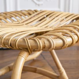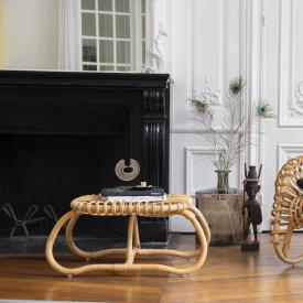 Inspirée des lignes des années 50 et 60, la collection BOUCLE en rotin naturel est pourtant une vraie création contemporaine. Maxence Boisseau et Nelson Alves, du studio AT-ONCE, ont eu carte blanche pour revisiter les codes esthétiques du rotin vintage. A la façon des mannequins en osier d'autrefois, l'artisan rotinier courbe à la main chaque "boucle" pour la placer à intervalles réguliers et faire naître un profil. Ce pouf en rotin est si confortable qu'on peut l'utiliser sans coussin.